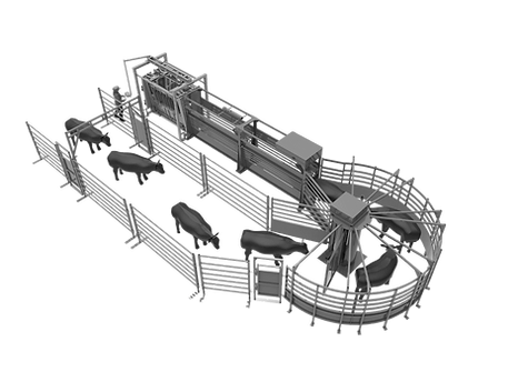 As portas patenteadas oferecem um espaço livre para que as vacas de termo e os touros de manada entrem e saiam da rampa sem pendurar a parte inferior do corpo.